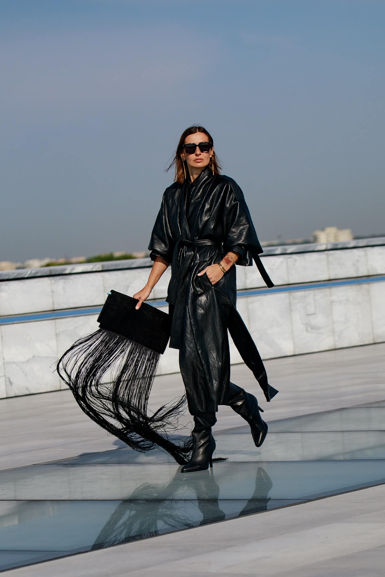 Secret Mission 002 to statement bag z długimi frędzlami, które poruszają się z każdym krokiem. Prosta bryła z klapą została przełamana mocnym detalem - frędzle nadają torbie lekkości, dynamiki i tworzą efekt nie do przeoczenia. To model, który najlepiej wygląda w miejskim wydaniu, nadając stylizacji charakteru undercover.
