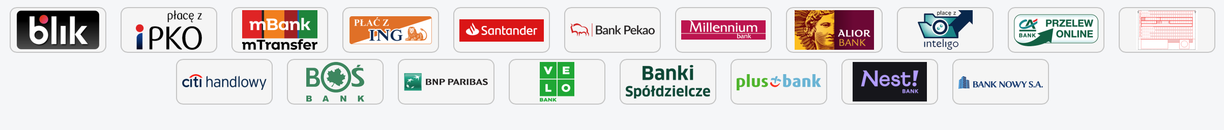 Przelewy elektroniczne, Blik, płatności kartą kredytową.